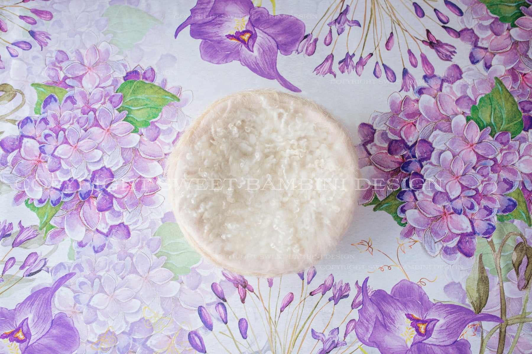 Beautiful Digital Photography Backdrop for Newborn Photography. Baby not included! Lovely white nest set against a watercolour backdrop of lilacs and pretty spring flowers, perfect for little girls.