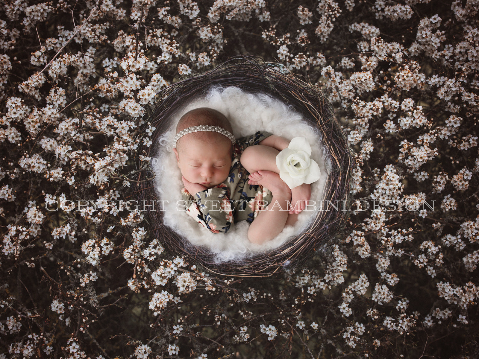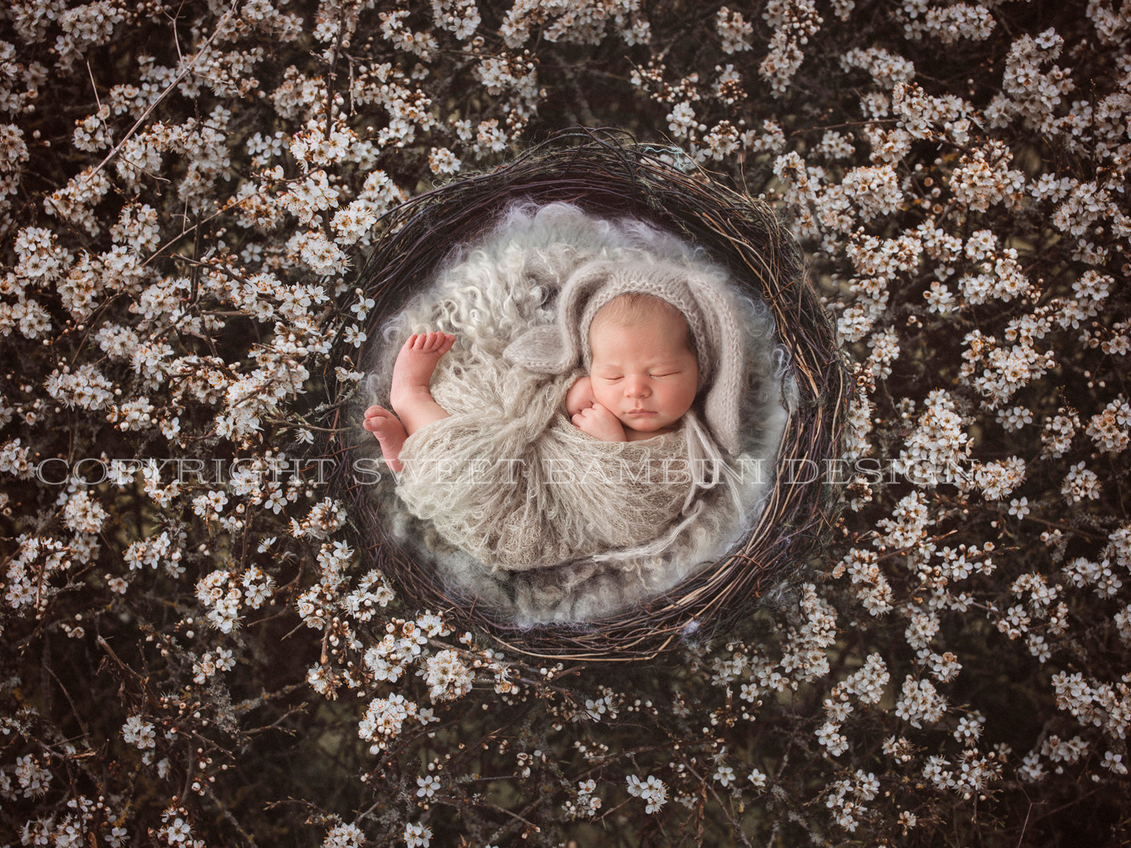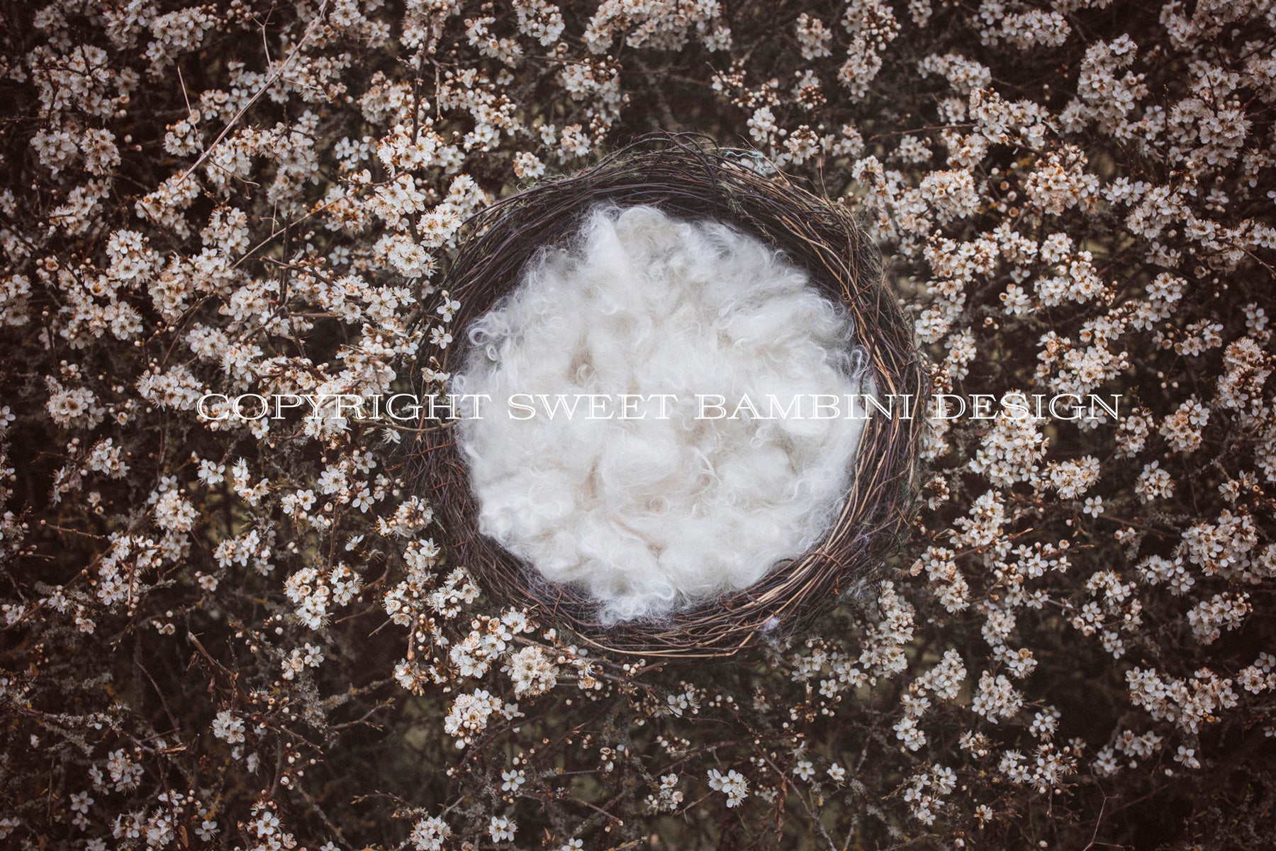 Newborn Digital Backdrop - Beautiful little rustic nest, shot from above, set amongst lovely flowering blackthorn bush.