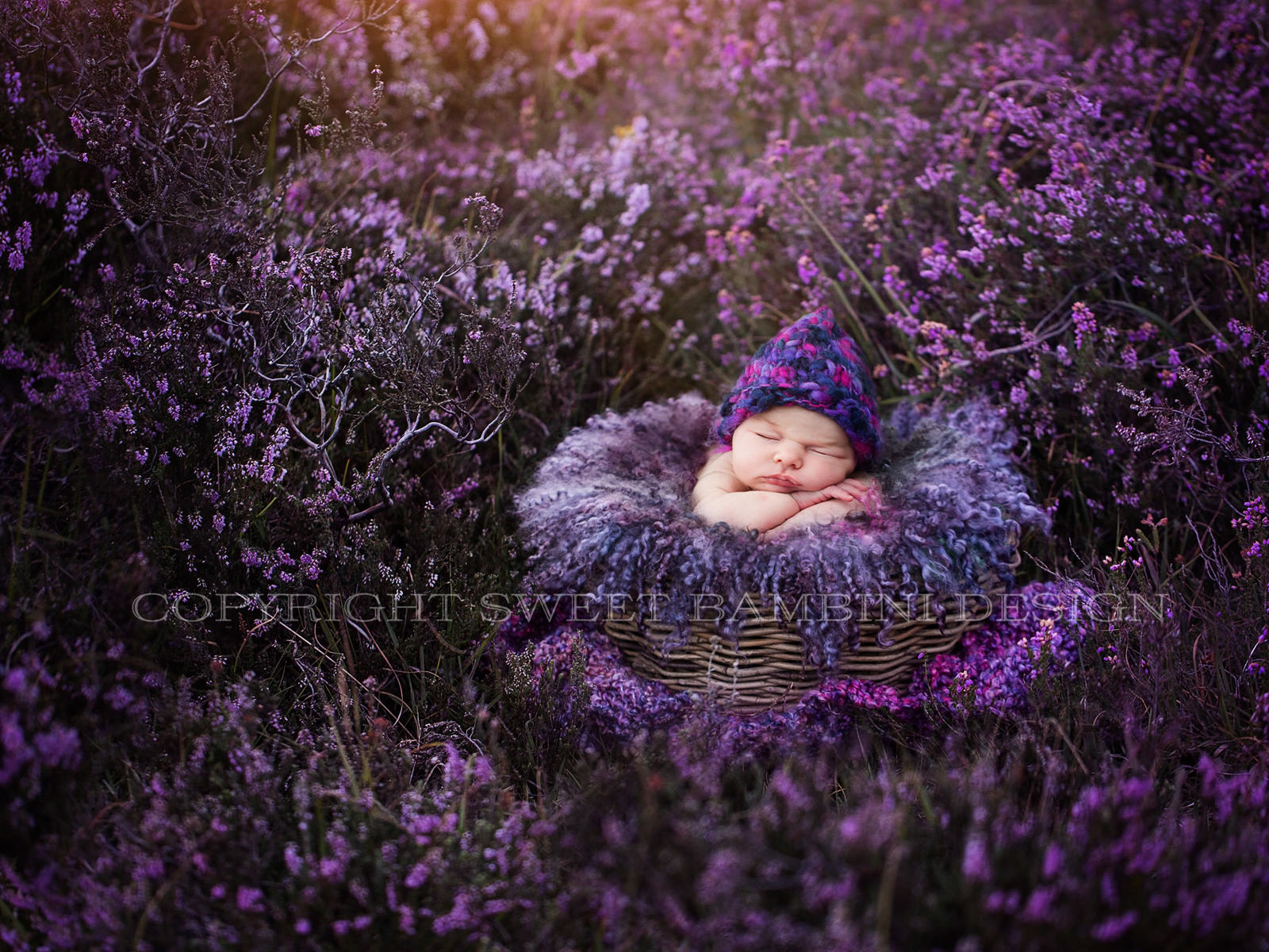 Newborn Digital Backdrop - Purple wicker basket in natural purple heather, New Forest UK