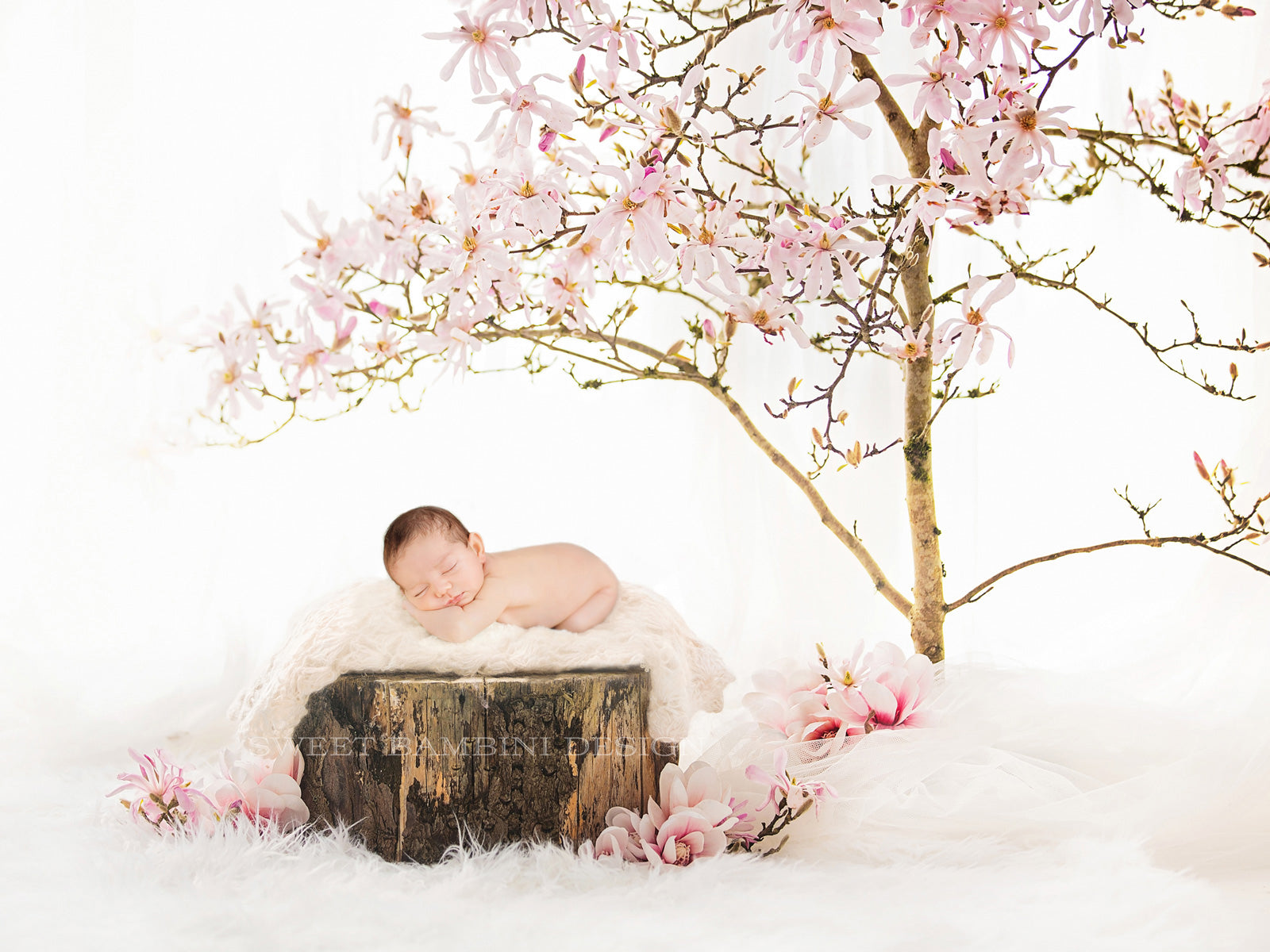 Newborn Digital Background for Girls - under the Magnolia Tree