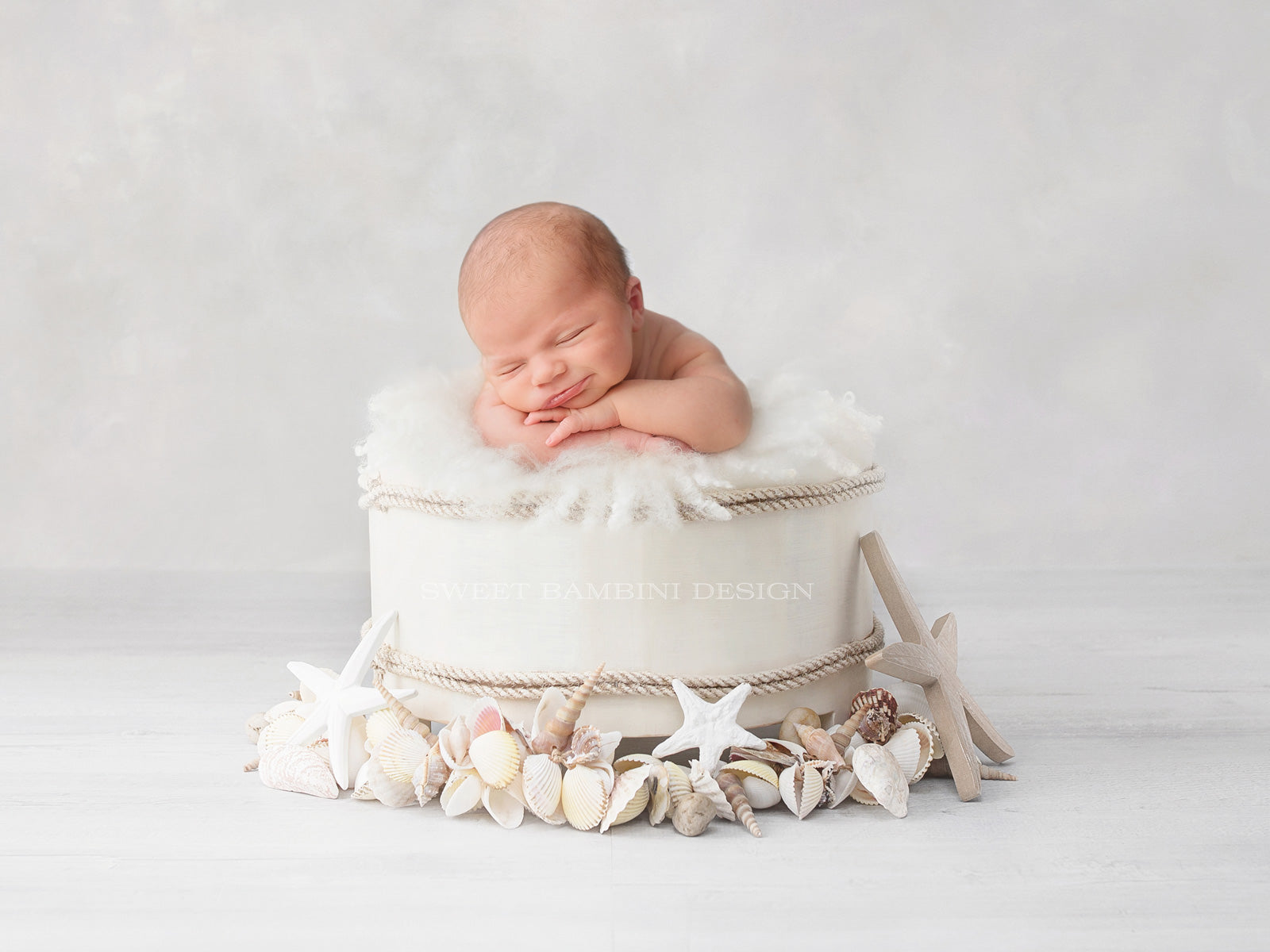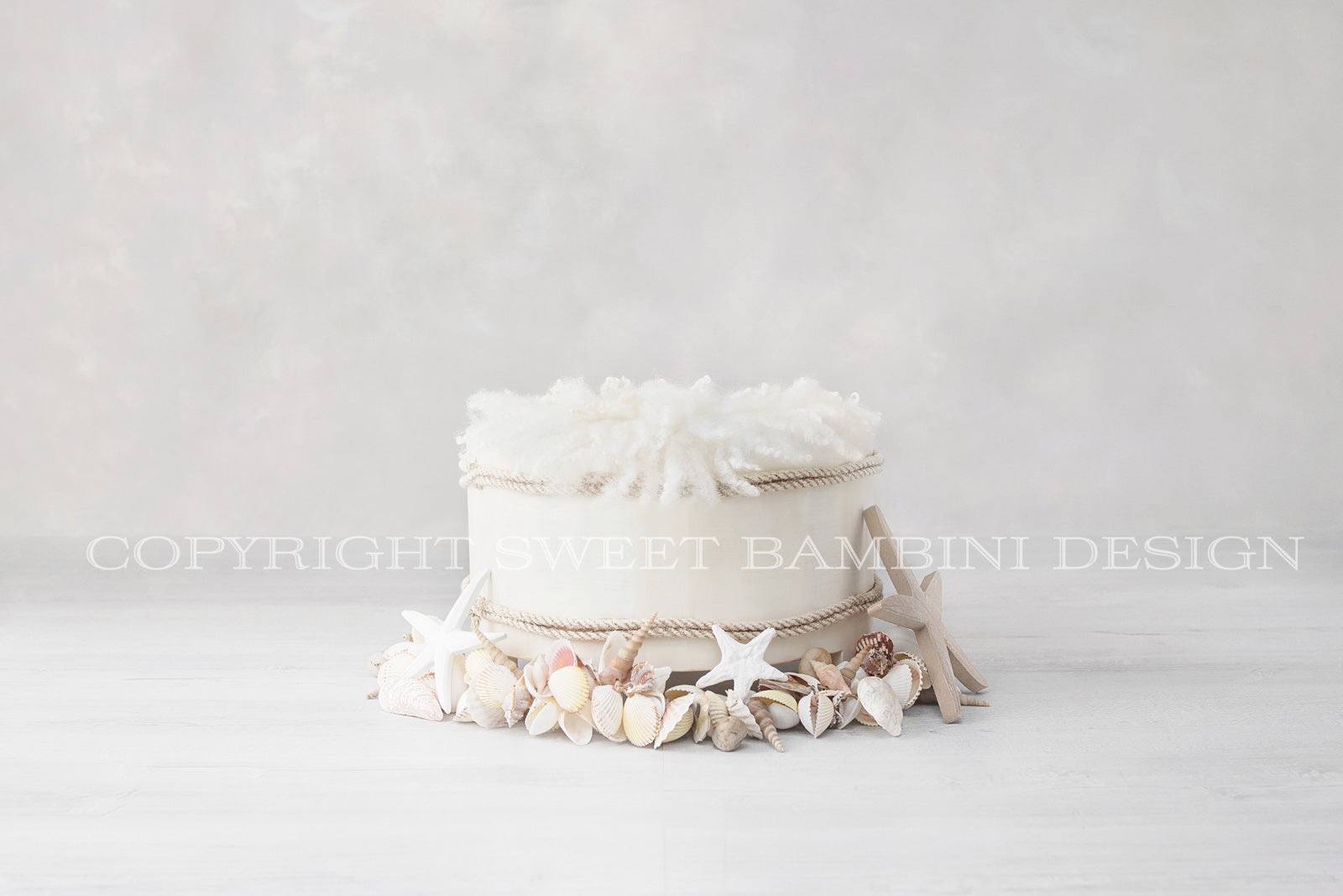 Newborn Photography Digital Photography Backdrop - Beautifully simple white bowl, decorated with sea shells and starfish, in lovely neutral tones.