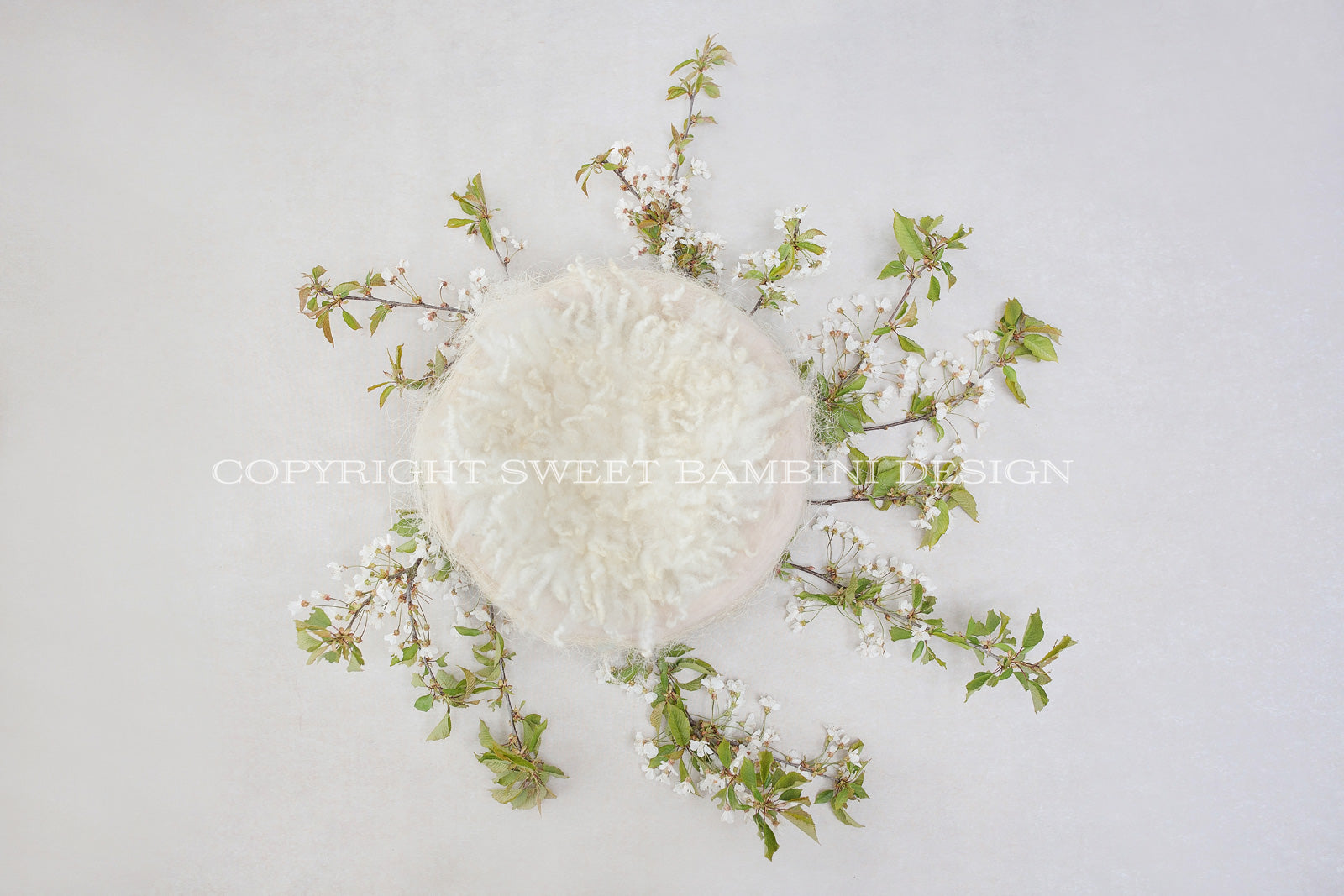 Newborn Photography Digital Backdrop for boys or girls - simple white nest with white blossom