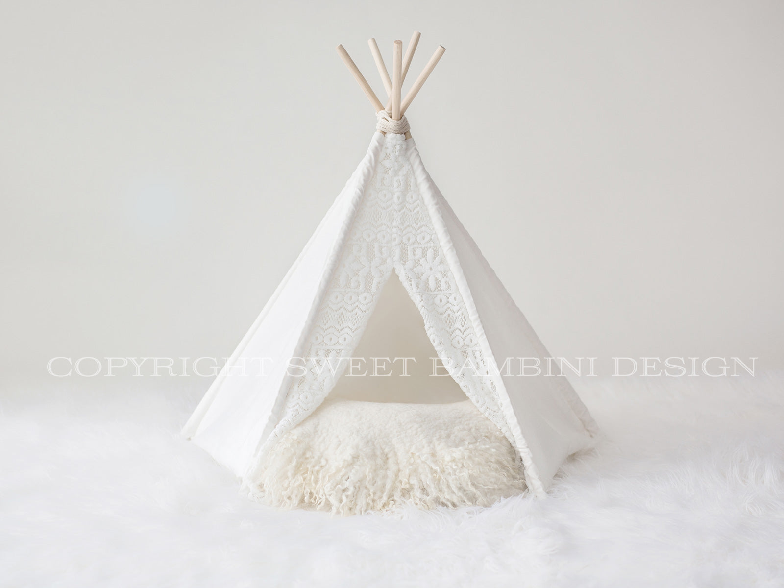 Newborn Photography Digital Photography Backdrop - Beautifully simple white wigwam with a little lace detail, perfect for girls or boys.