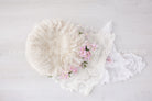 Newborn Photography Digital Photography Backdrop - Beautifully simple white nest with fresh pink flowers and white lace blanket. This backdrop is delicate and very subtle, perfect for those clients who like just a little floral detail.