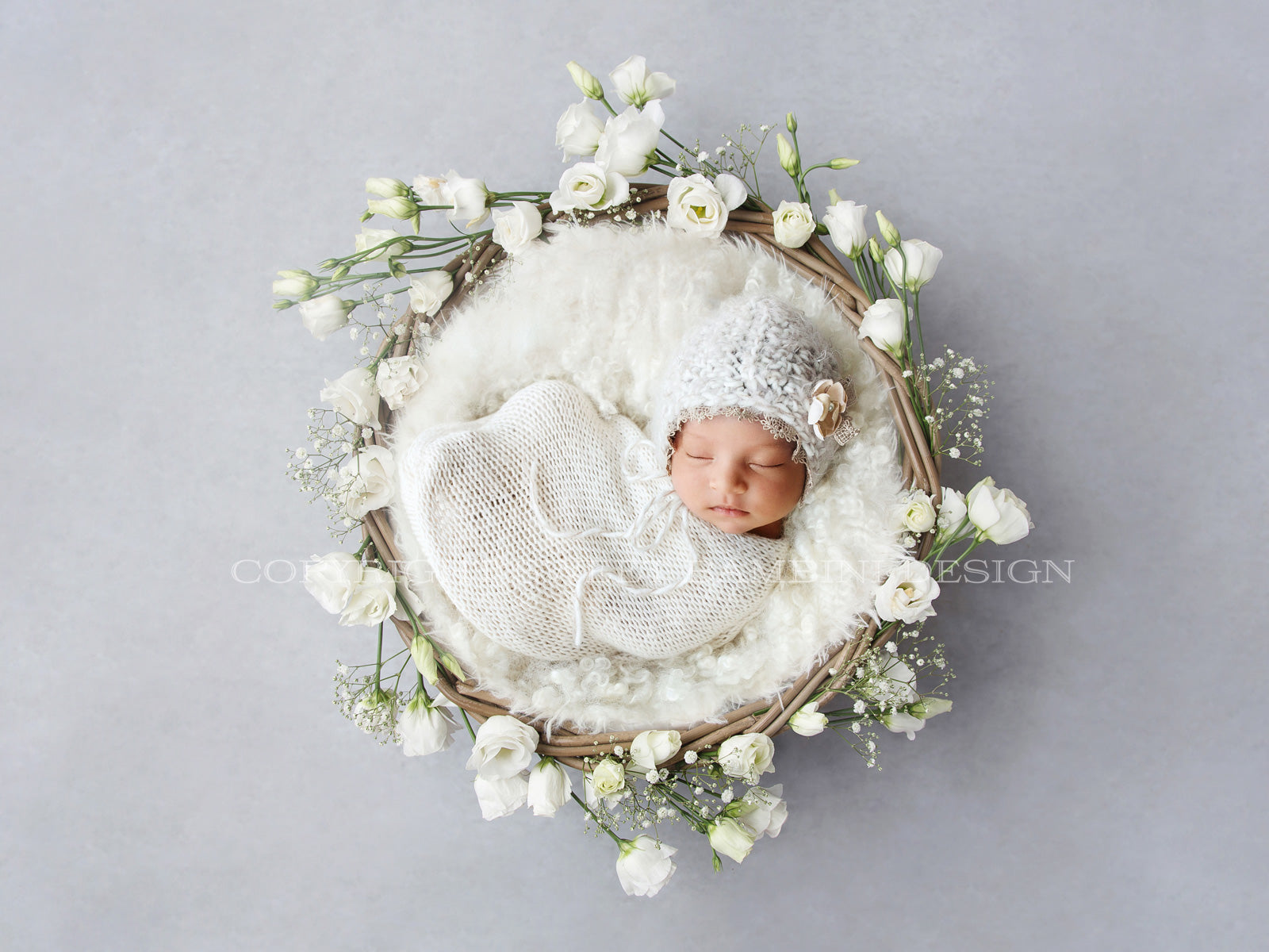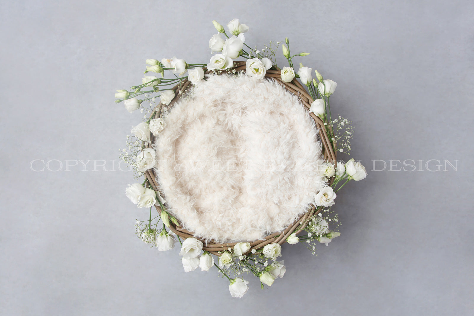 Newborn Digital Backdrop for girls - White Lisianthus Flower Nest