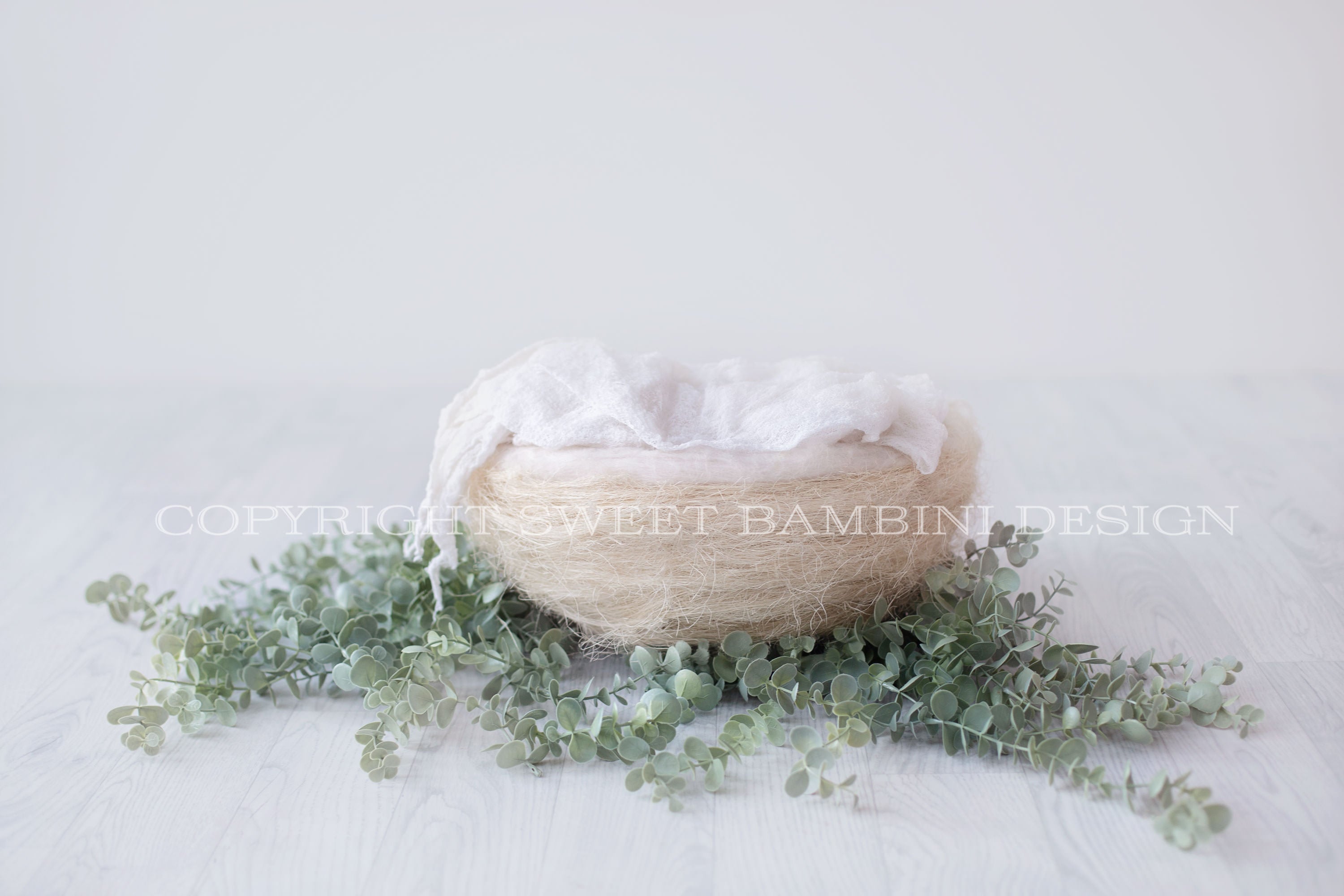 Organic Newborn Digital Backdrop - Simple white nest with eucalyptus