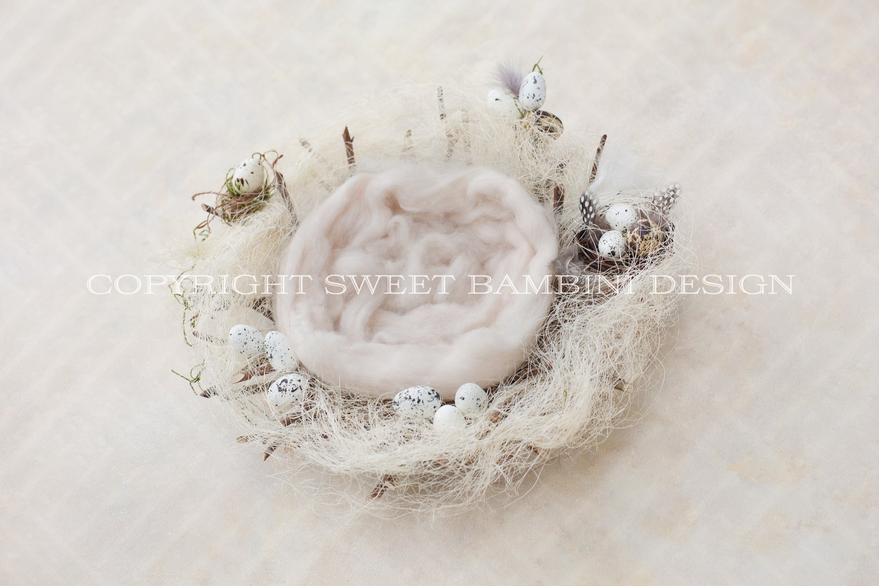 Easter Digital Backdrop for newborns - Natural nest with little eggs and a white middle shot from side