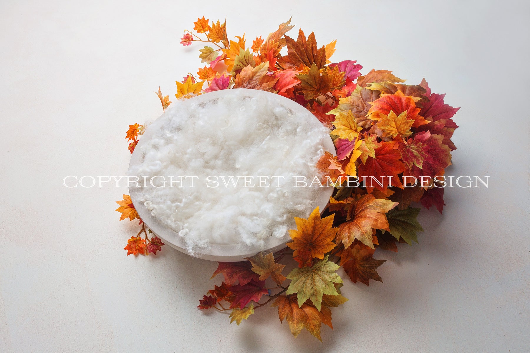 Autumn Newborn Digital Backdrop all - White bowl , autumn leaves, autumn wreath, autumn digital