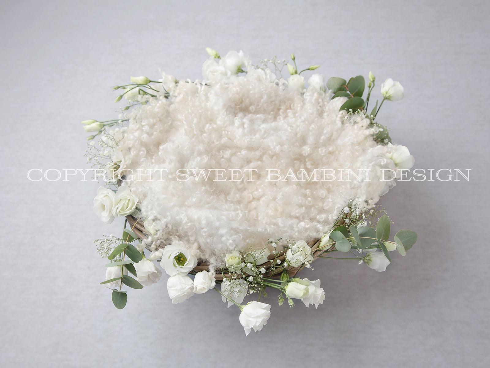 Newborn Digital Backdrop for girls - Beautiful White Flower Nest, side lit version
