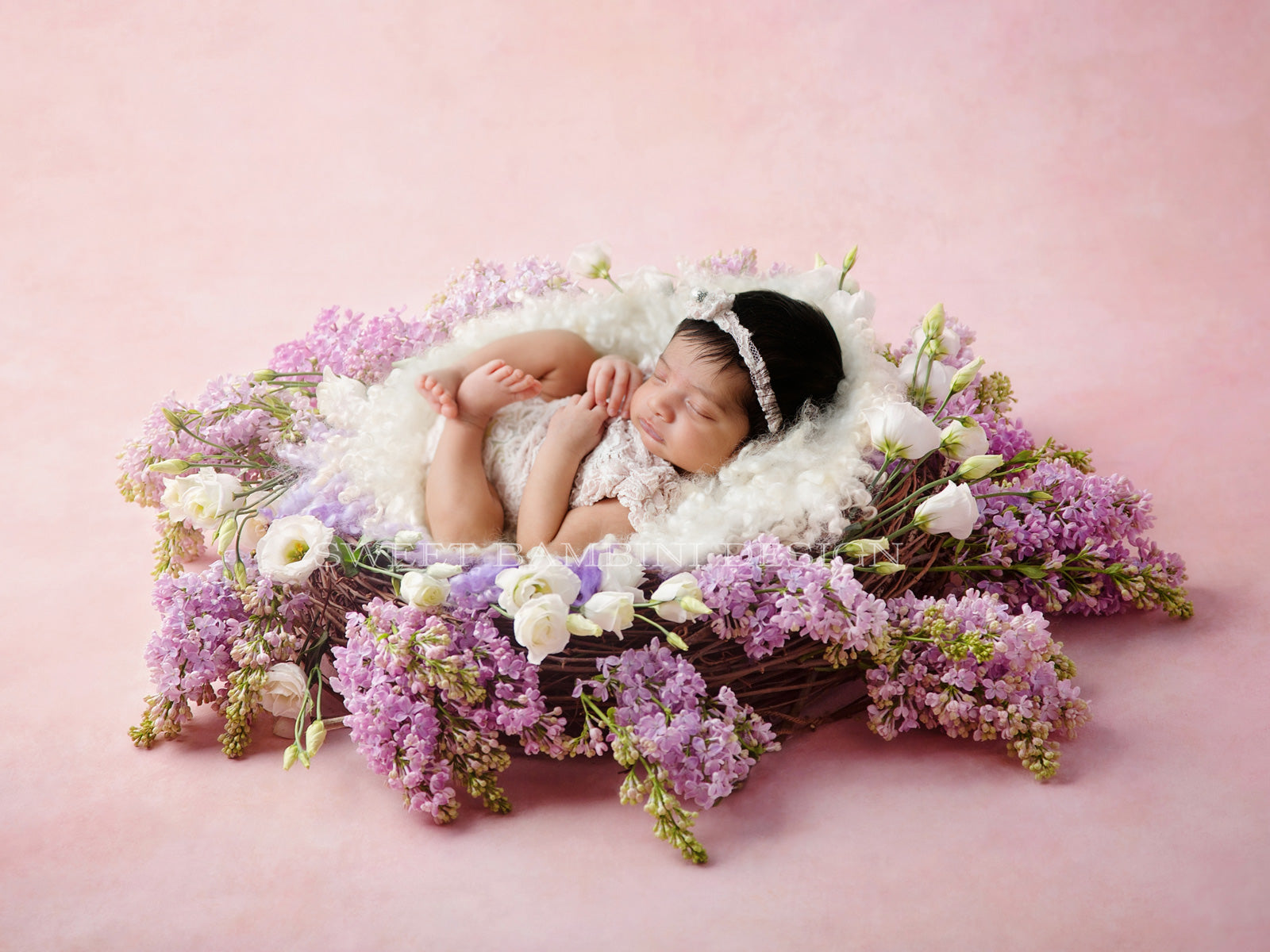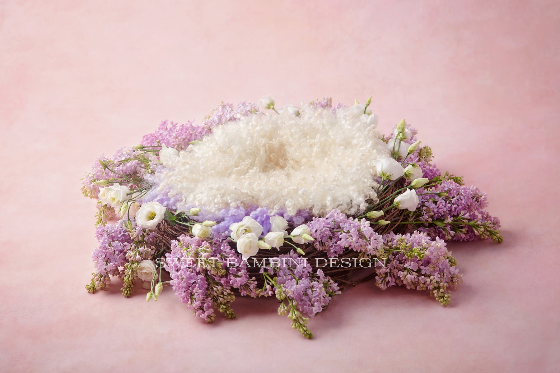 Newborn Digital Backdrop - Lilac dream side lit fresh flower nest