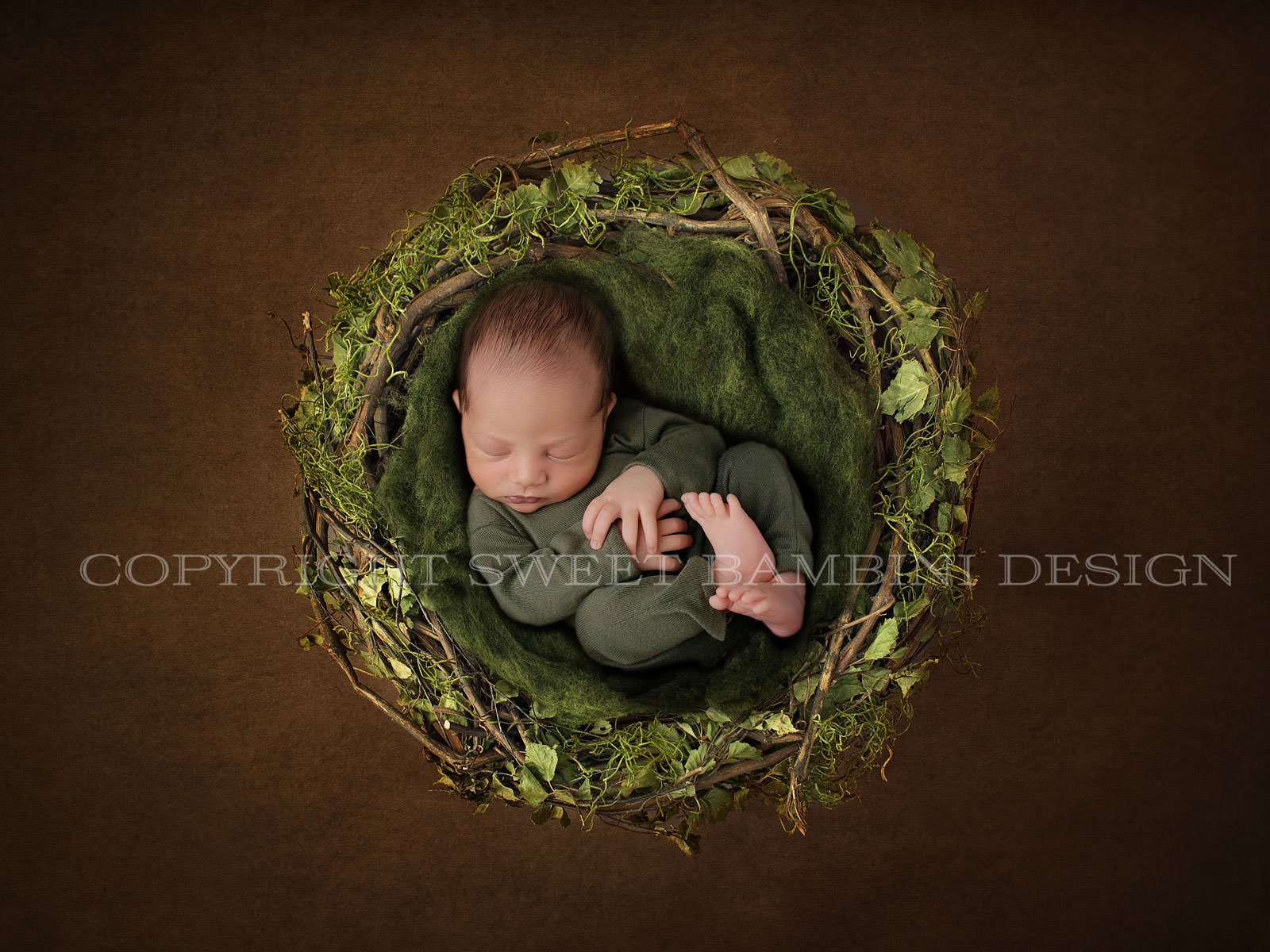 Newborn Digital Backdrop- Natural Leaf and Moss Nest - Instant Download Ready For You to Edit
