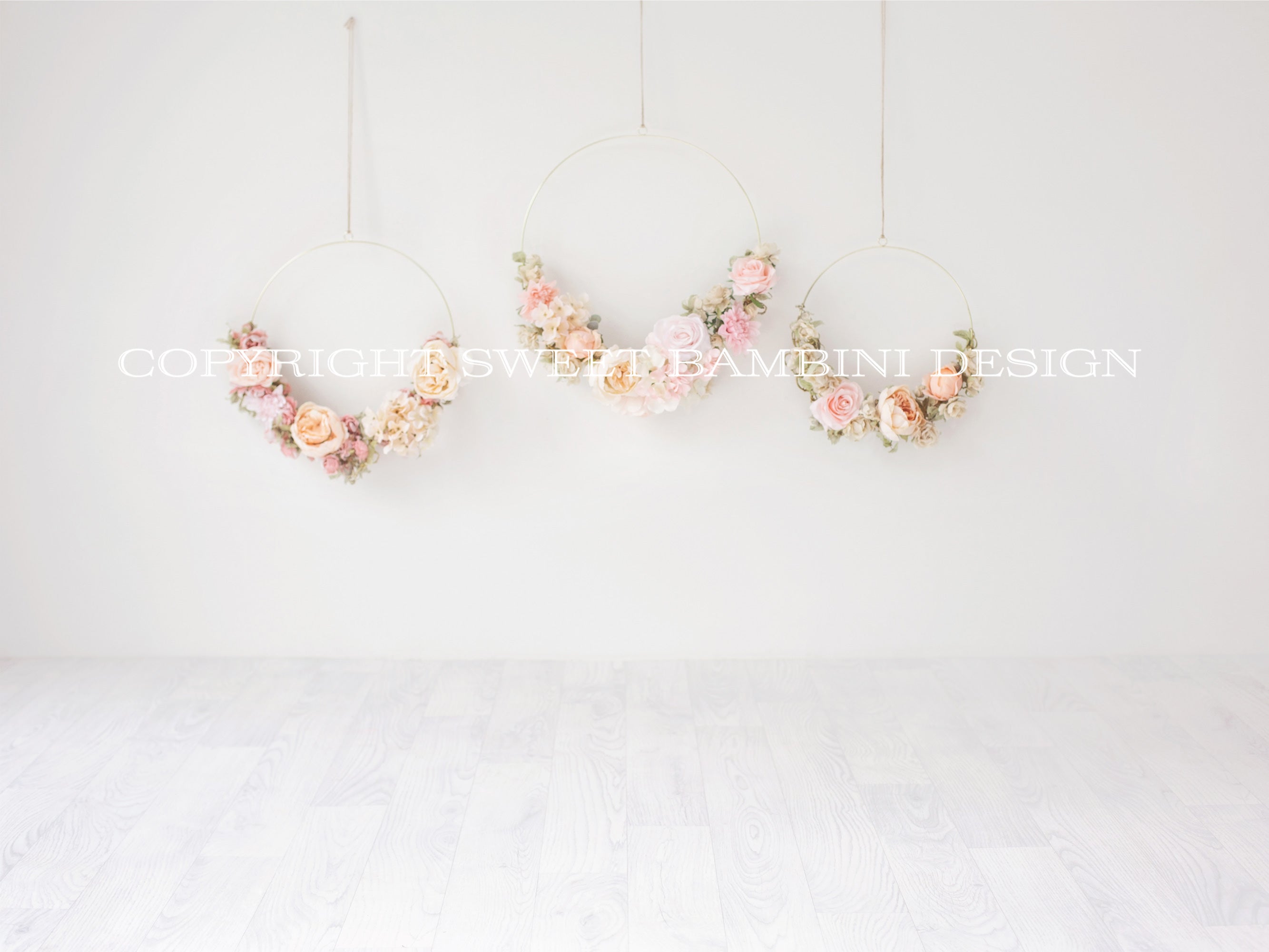 This listing is for 3 digital backdrops, perfect for sitters. Please scroll through images to see each one - first one is three floral hoops with the floor, for those full body shots as illustrated. The 2nd is a closer take (perfect for inserting into existing images with plain backgrounds using blending modes), and the 3rd is a more out of focus version - perfect If you really want your subject to stand out, but you still want to have some hoop detail in the background.