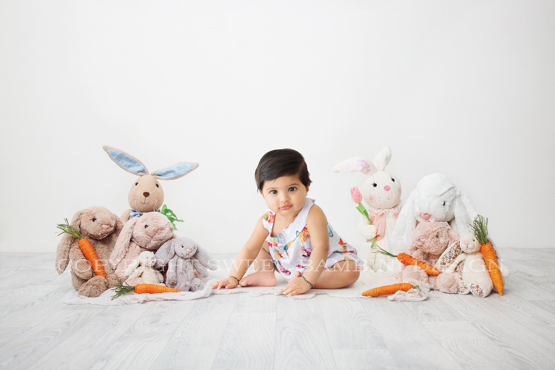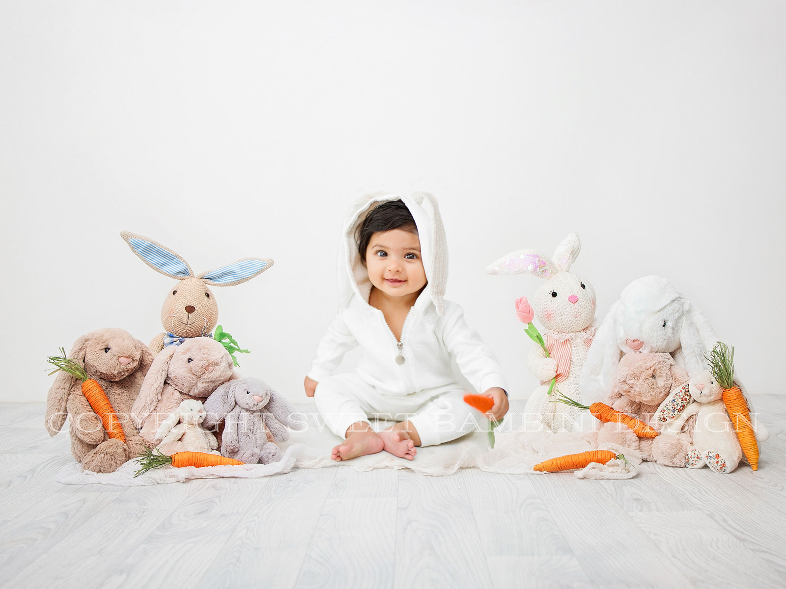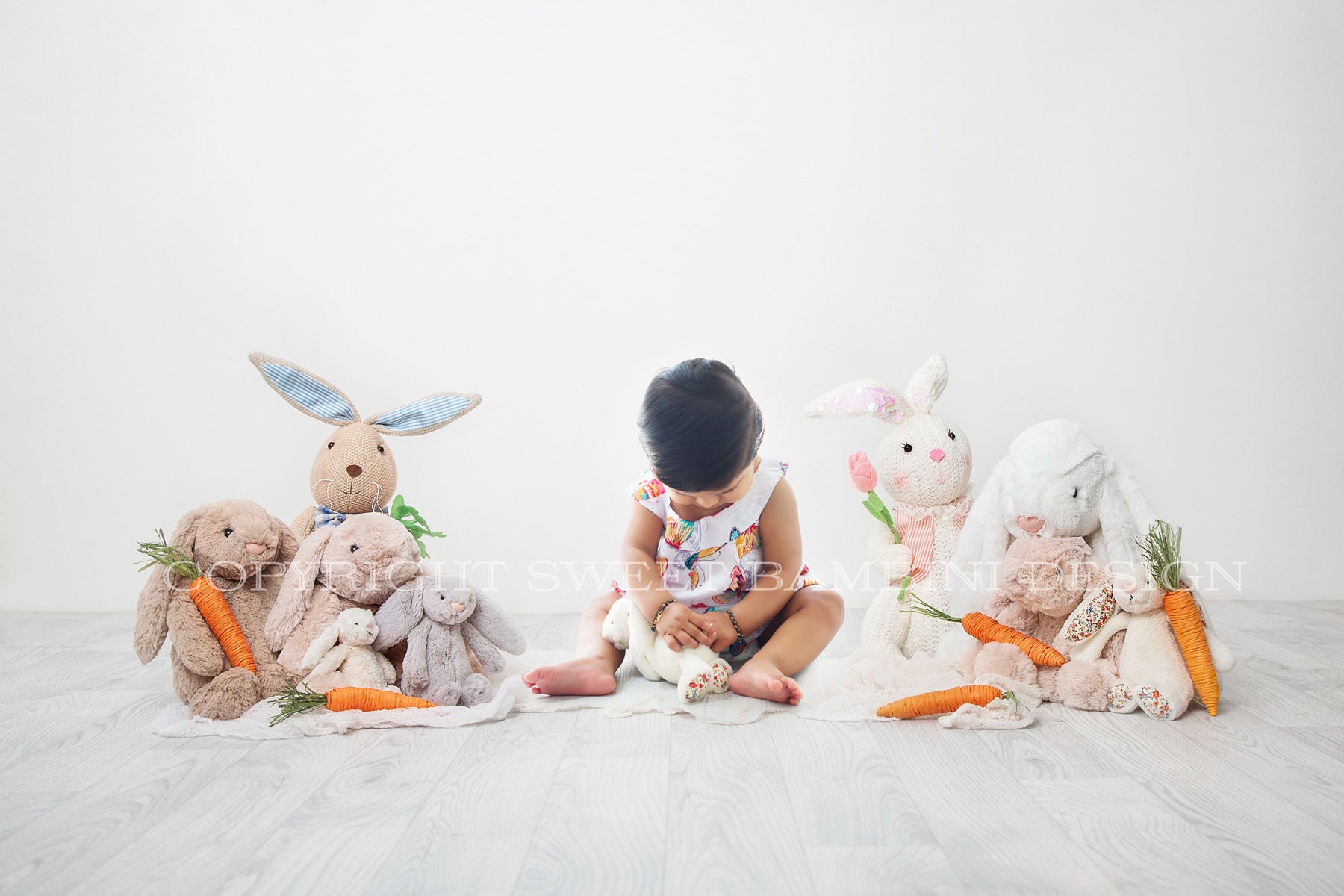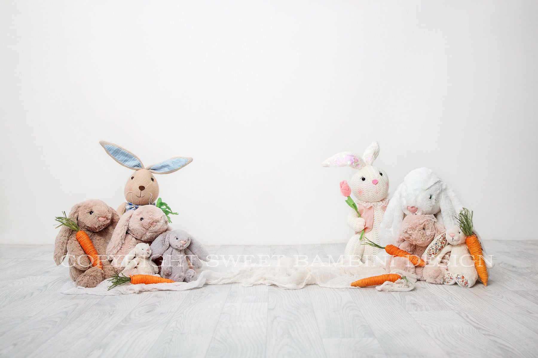 Easter Sitter Digital Backdrop - Cuddly Bunny Easter Scene