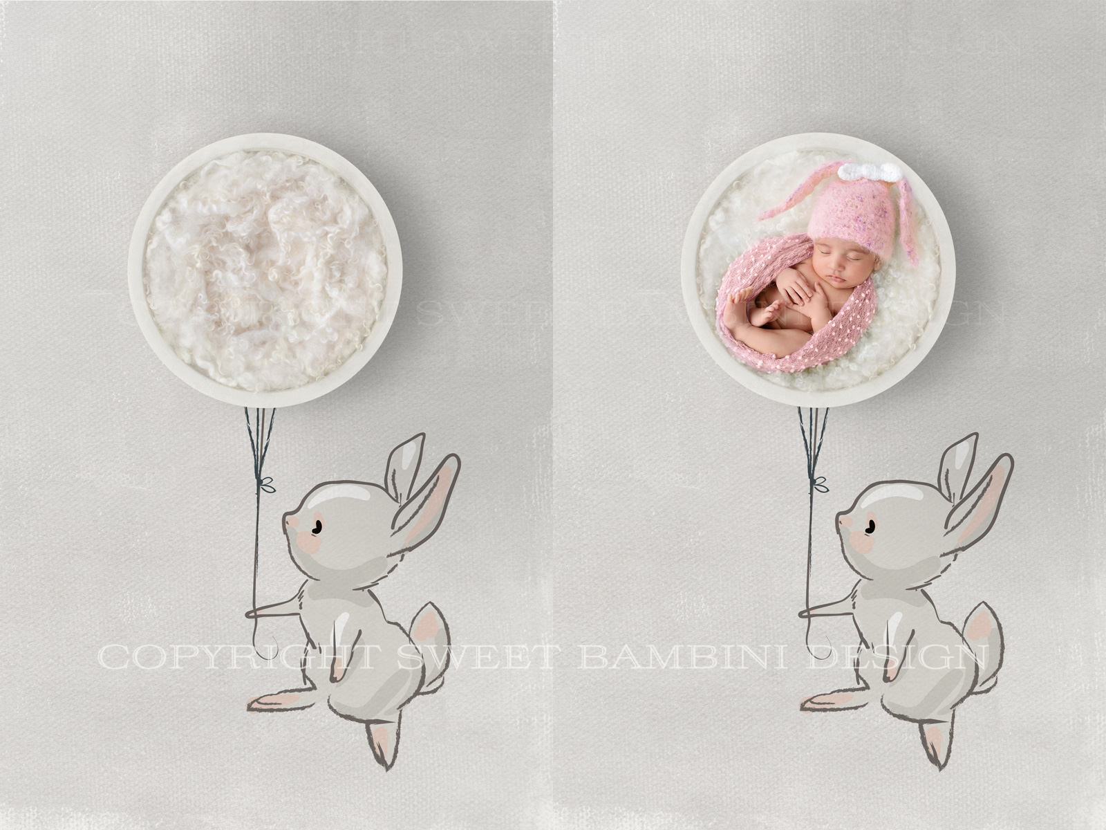 Beautiful newborn digital background - Beautiful watercolor bunny on a light grey, painted & textured background.