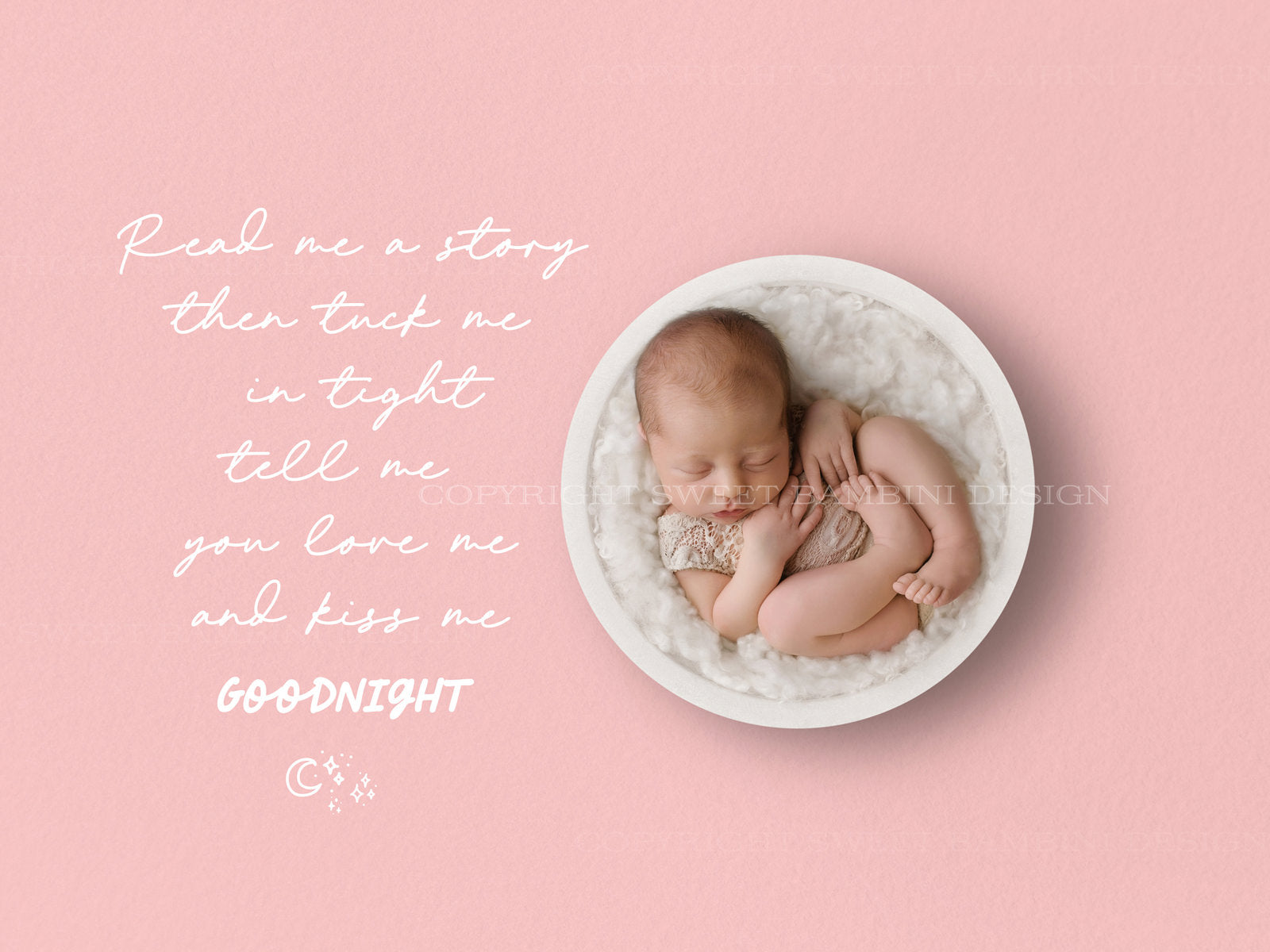 This Nursery Art Digital Backdrop for newborns is lovely and a little different. The word and the bowl are on a dusky pink, lightly textured background.