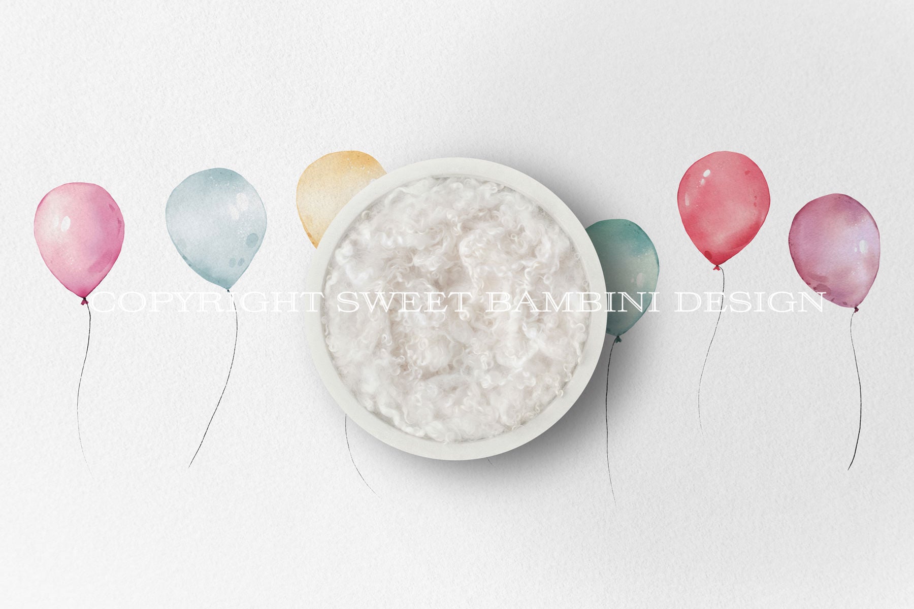 This Nursery Art Digital Backdrop for newborns is lovely and a little different. The watercolor balloon illustration and bowl are set against an off-white, lightly textured background.