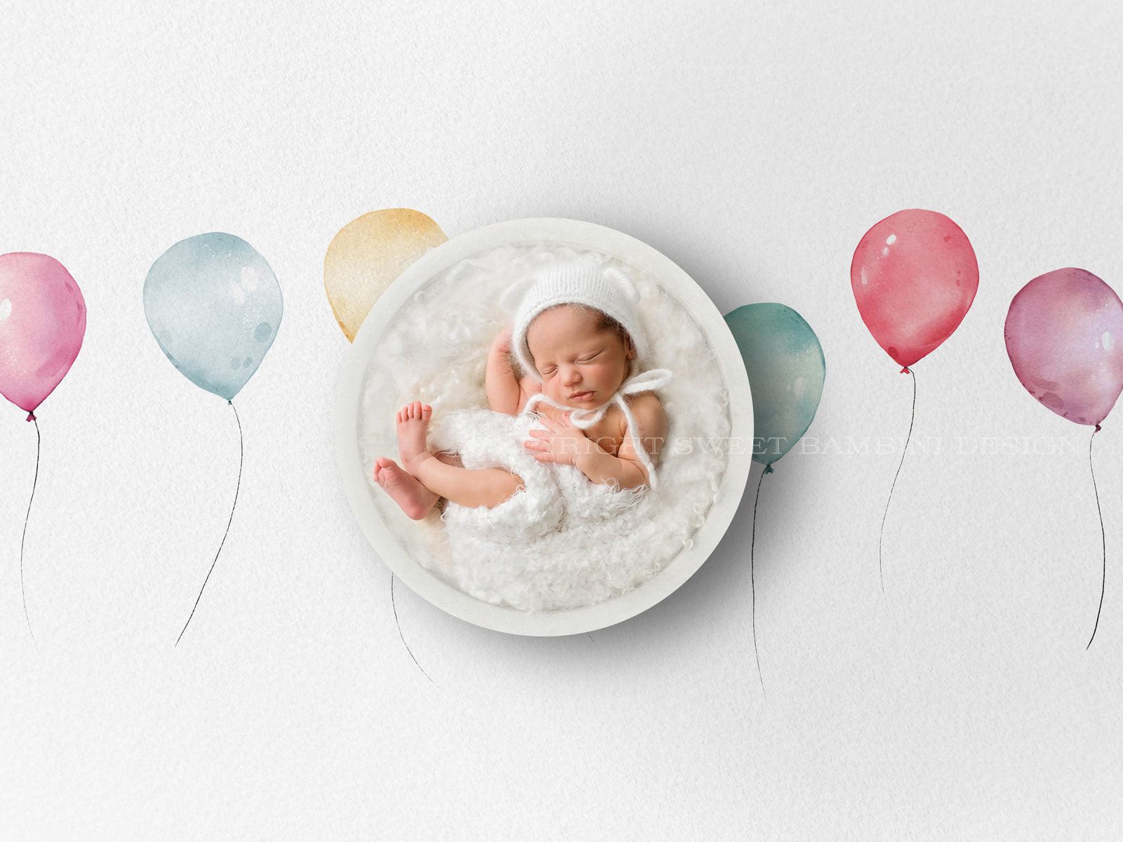 Newborn Digital Background - Nursery Art Digital, Watercolour Balloons, Instant Download, Ready for you to Edit