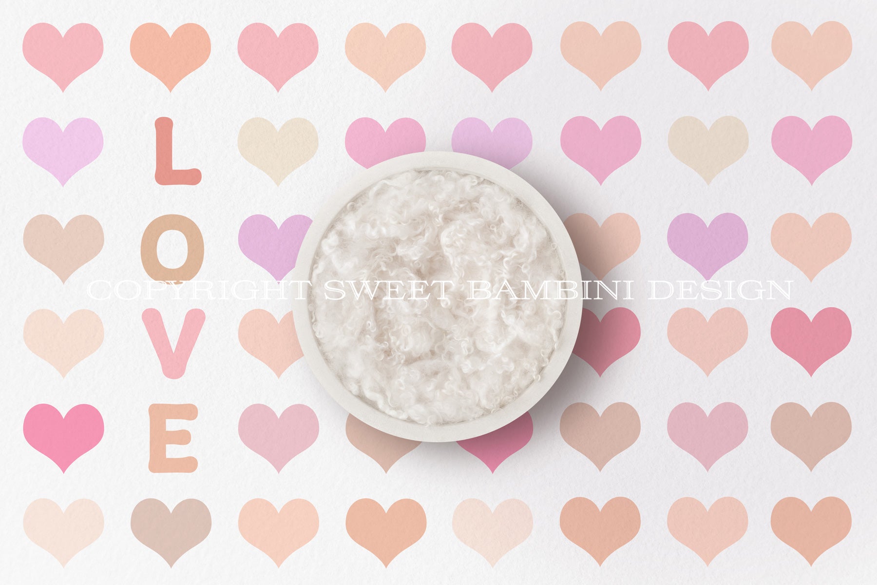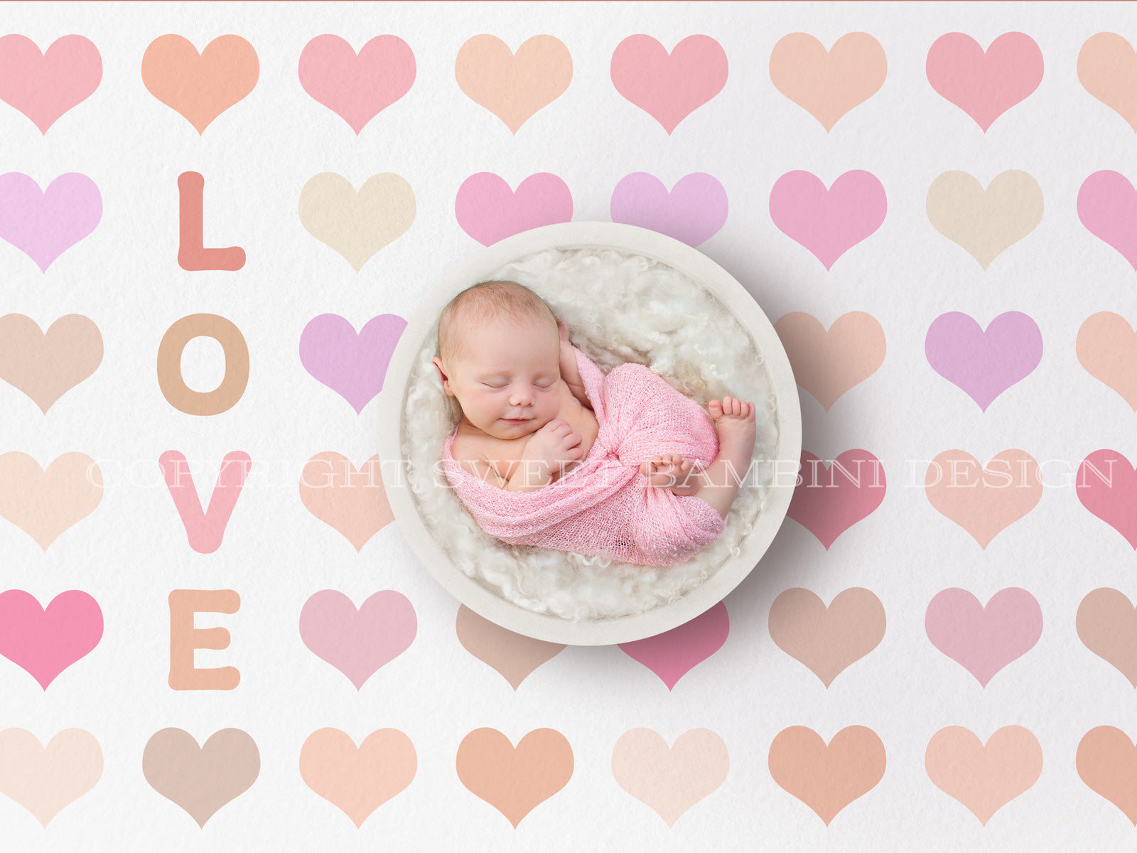Newborn Digital Background - Watercolour Effect Pinks and Warm Neutrals, LOVE Hearts, Instant Download, Ready for you to Edit