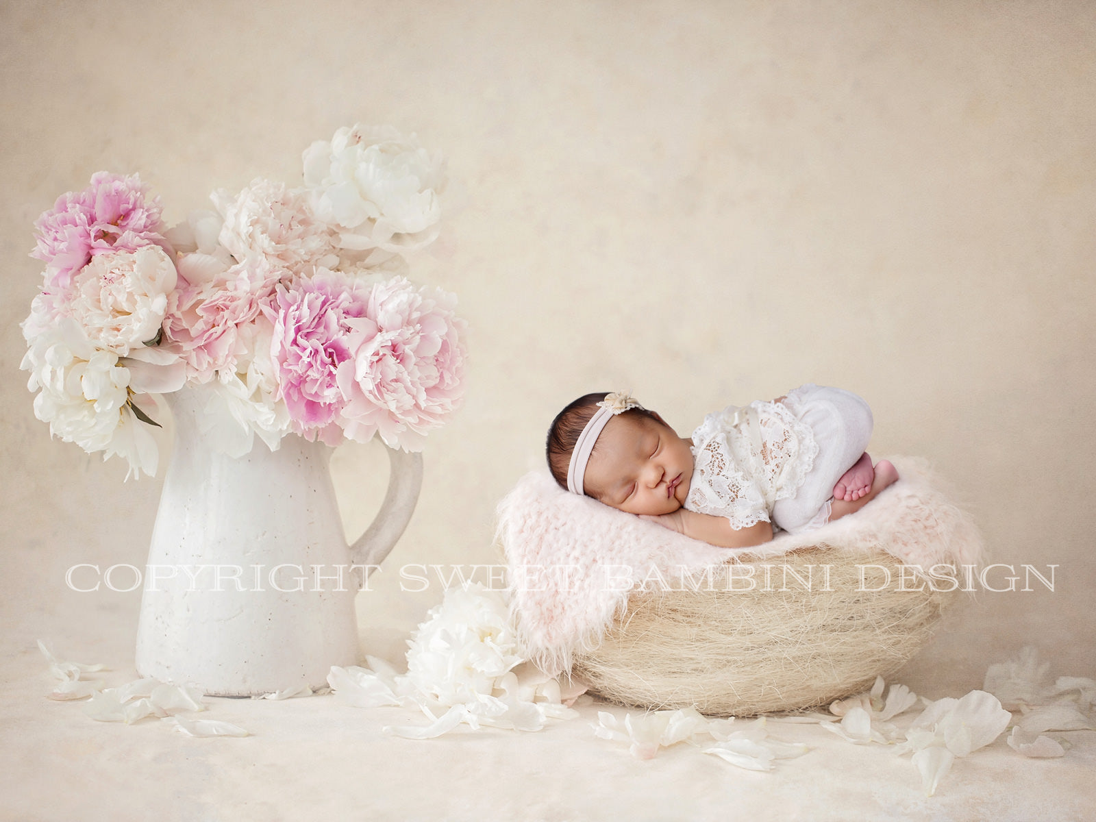 Newborn Digital Background - Peonies & Nest, Instant Download, Ready for you to Edit