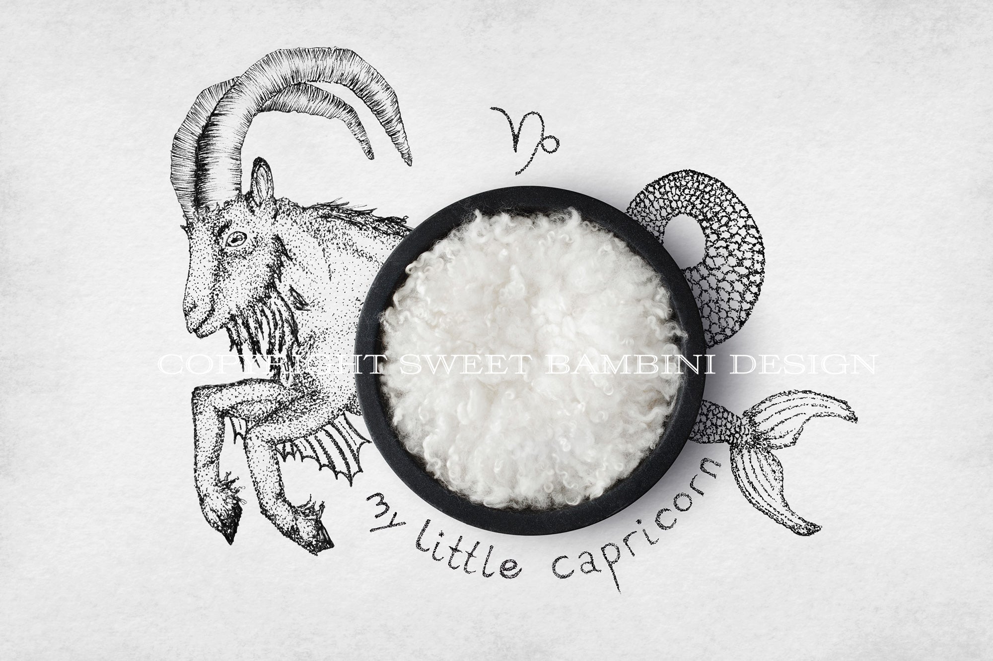Horoscope newborn digital backdrop - CAPRICORN baby, black bowl