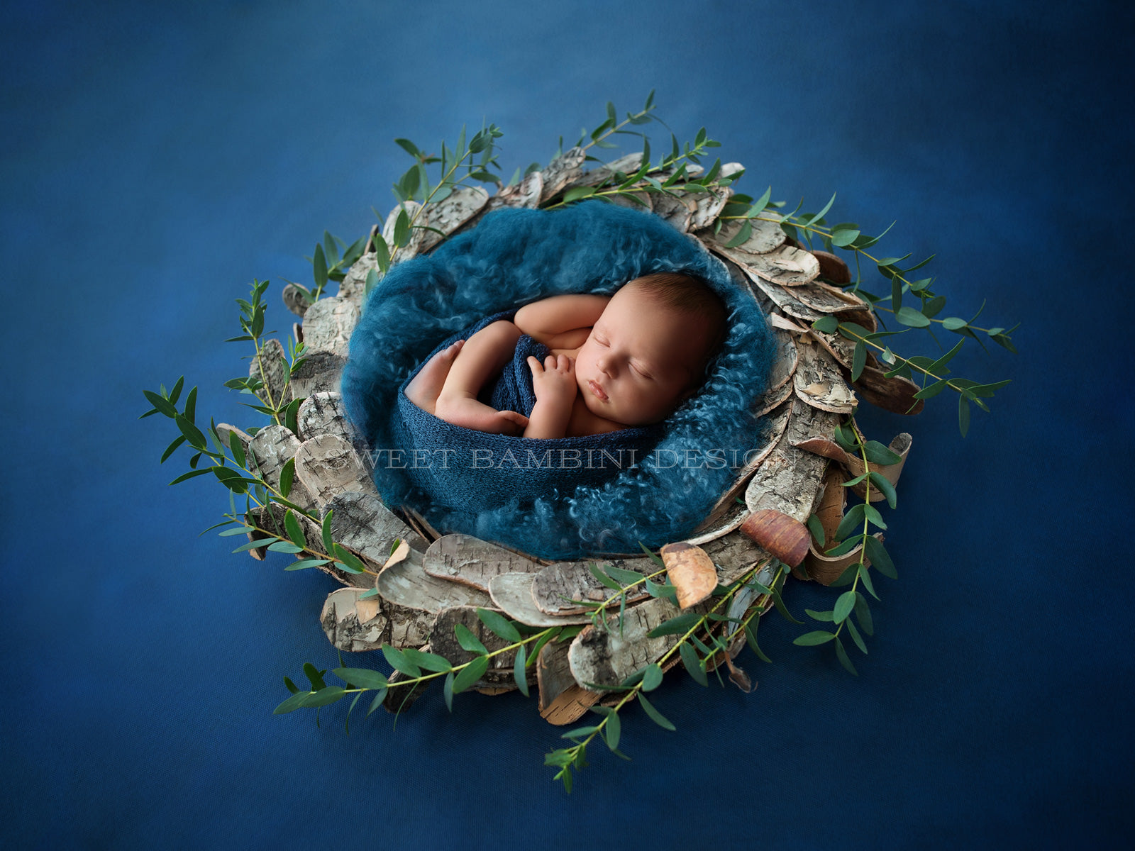Newborn Photography Digital Photography Backdrop - natural, rustic bowl with fresh foliage, unisex and great for girls or boys.