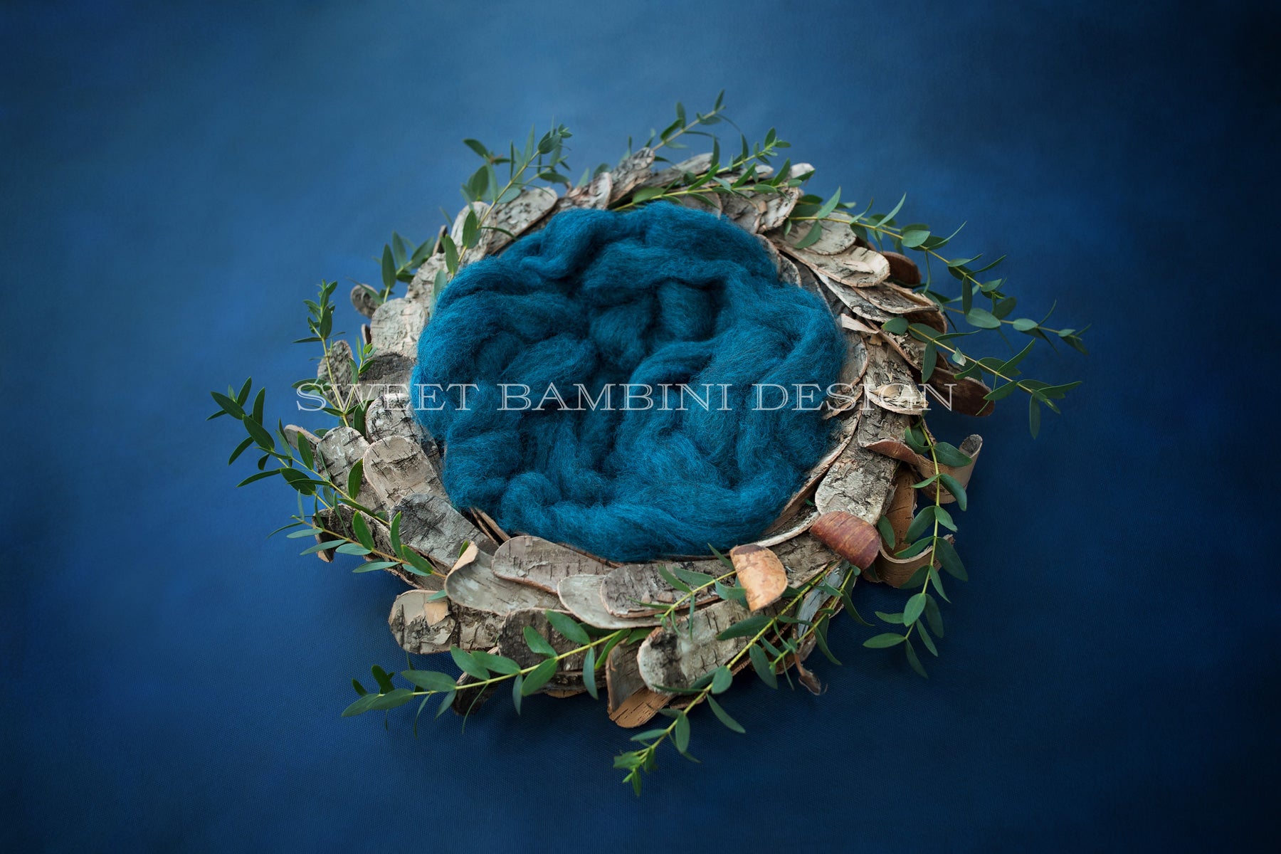 Photographed on hand painted textured rich blue (a bit like a like teal/navy mix) canvas background. This one is lit from the back and side - there is also a "from above version" available here. Baby not included!
