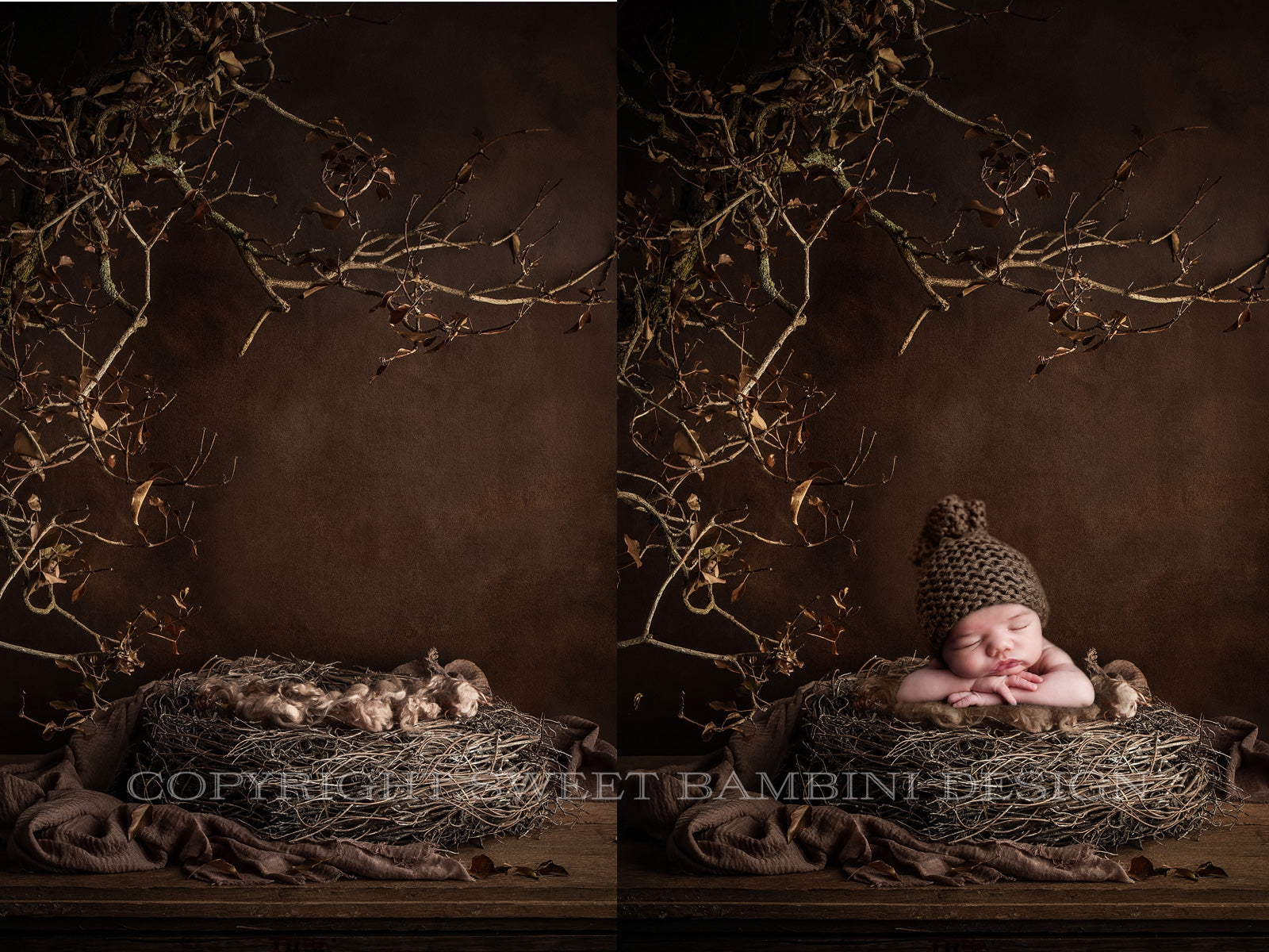 Natural World Newborn Digital Background - Rustic Nest on Textured Background, Instant Download, Ready for you to Edit