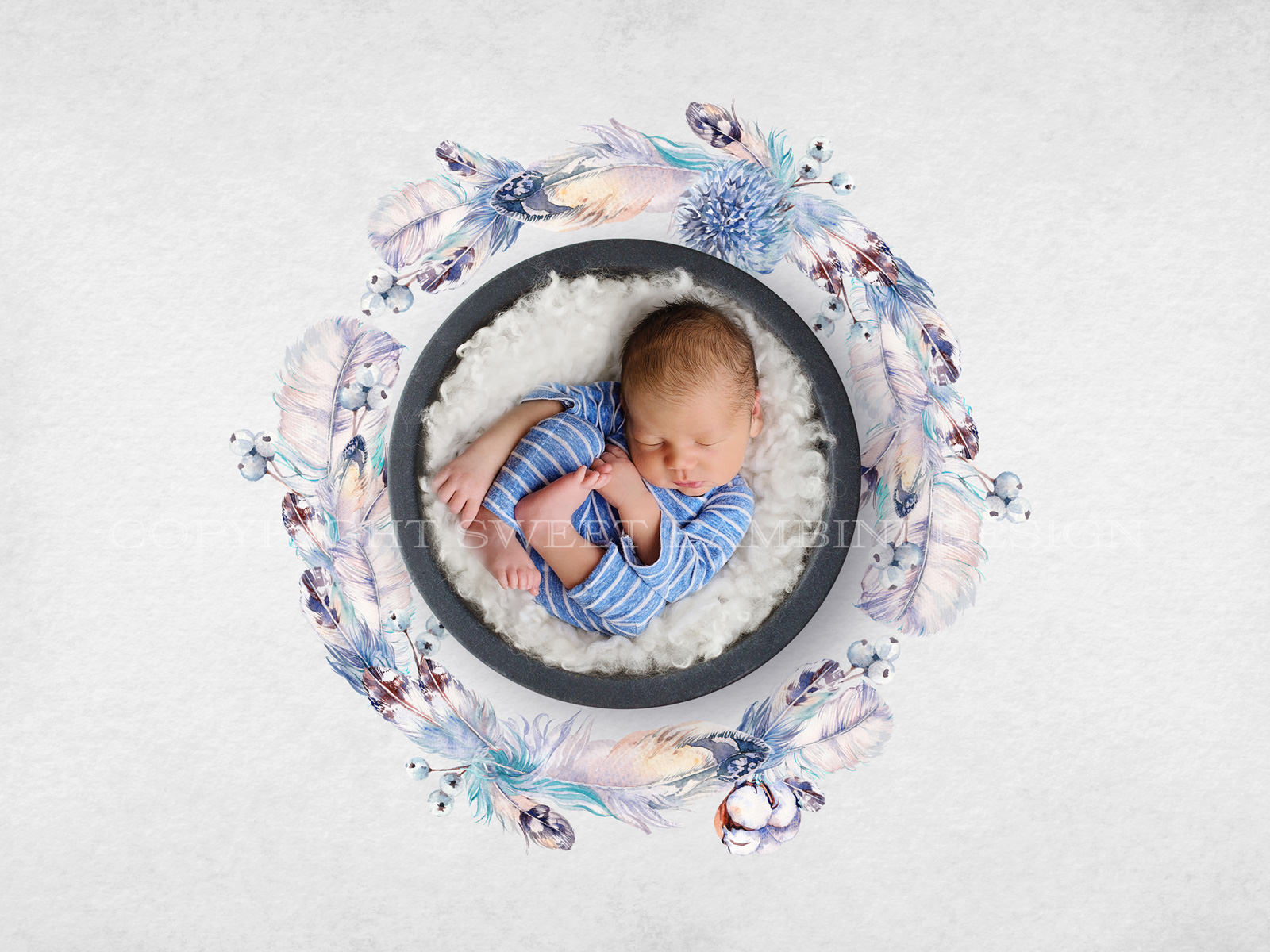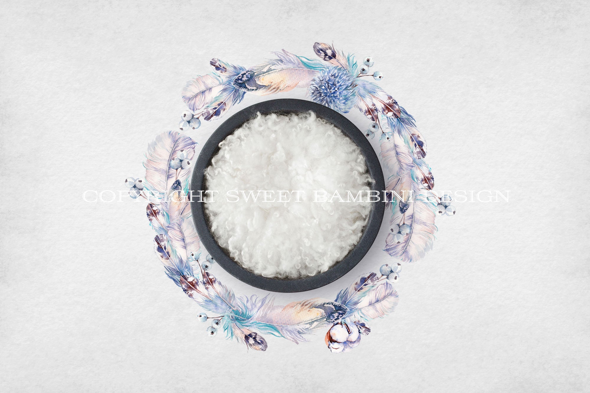 Newborn Digital Backdrop - Unisex Winter Watercolour Nest with Feathers
