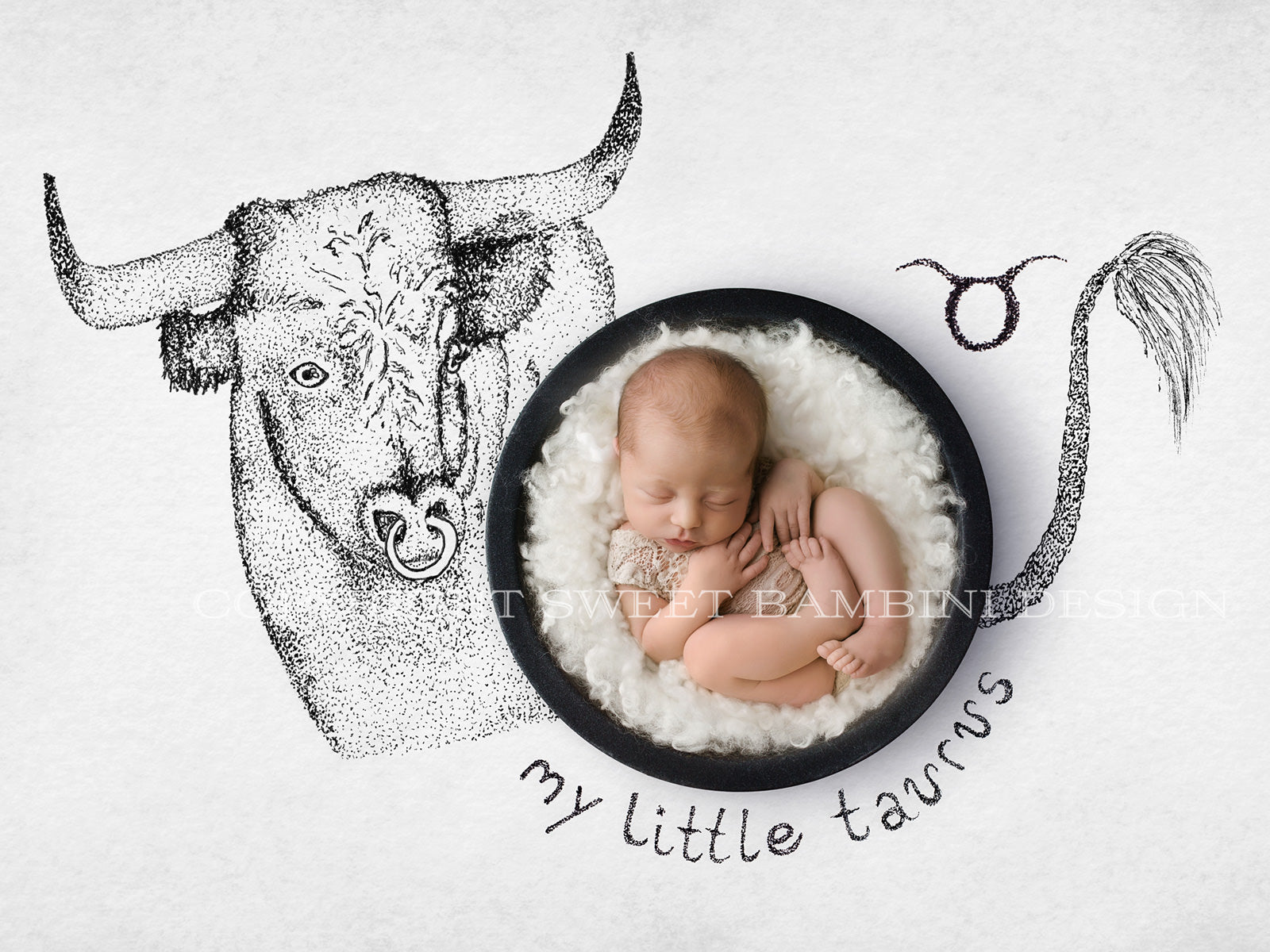 Horoscope newborn digital backdrop - TAURUS - zodiac digital with a black bowl- instant download